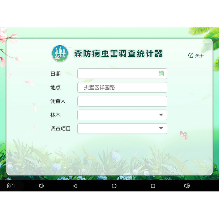 調(diào)查統(tǒng)計(jì):森防病蟲害調(diào)查統(tǒng)計(jì)器自動(dòng)引入調(diào)查日期、地點(diǎn)、調(diào)查人、林木種類、調(diào)查項(xiàng)目等信息,并按調(diào)查項(xiàng)目自動(dòng)調(diào)用對(duì)應(yīng)的excel表,字段內(nèi)容填完后自動(dòng)進(jìn)行統(tǒng)計(jì)